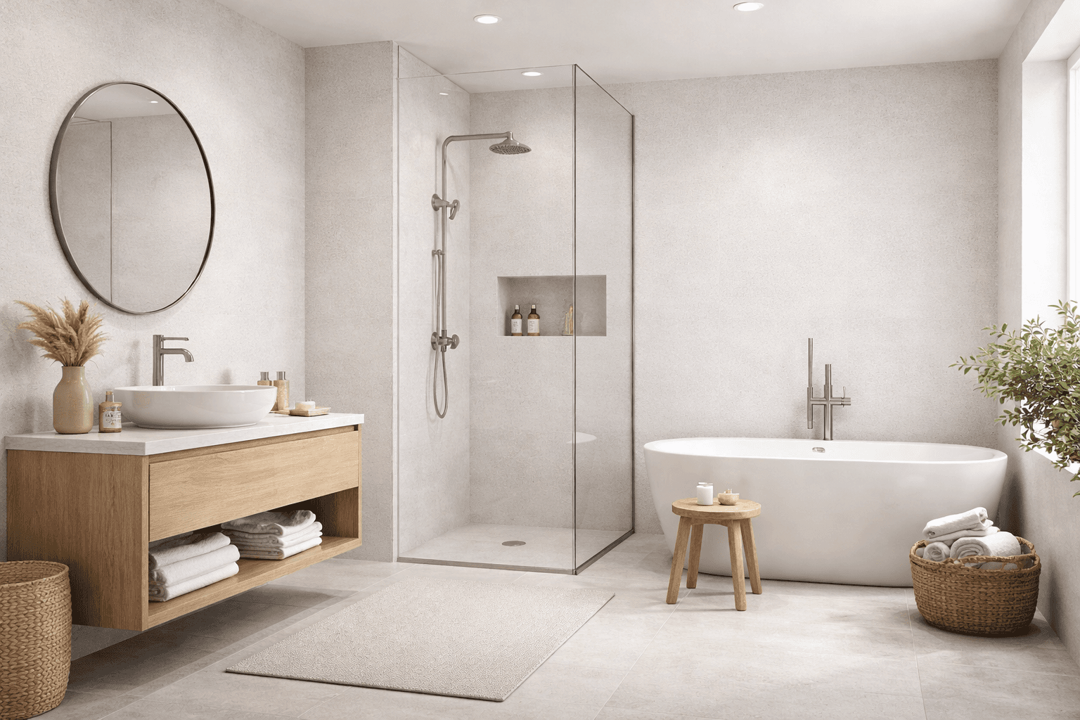 Carefully selected porcelain tiles with consistent finishes and durability.