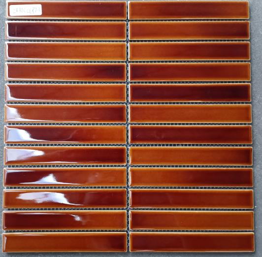 Kitkat Caramello brown Gloss finger tile mosaic. Each tile is 22 x 145 mm mounted in 300 x 296 mm sheets. Perfect for showers, bathroom & kitchen walls splashbacks. Full colour range available – search Kitkat to see full range.