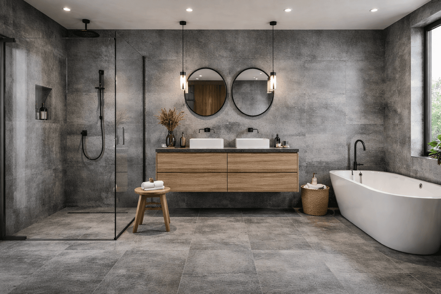 Carefully selected porcelain tiles with consistent finishes and durability.
