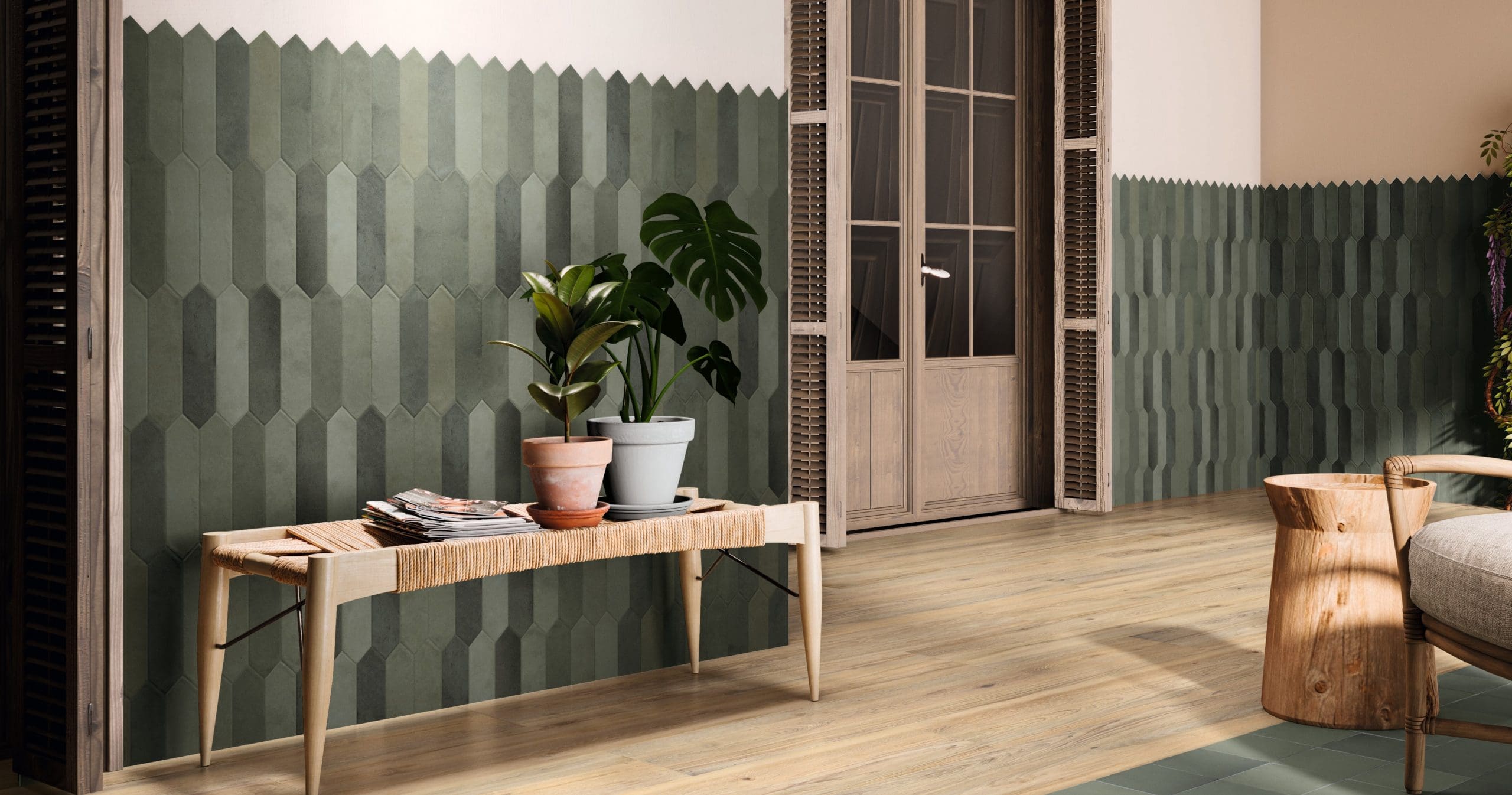 Picket tiles are inspired by a classic hexagon silhouette which are elongated in the center and slimmer for a modern and elegant look. These elongated tiles are a great way to add a timeless and unique appeal to any space.