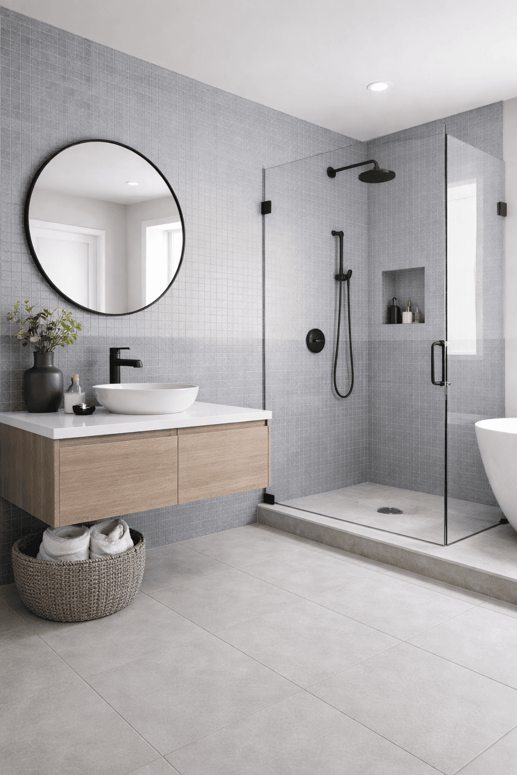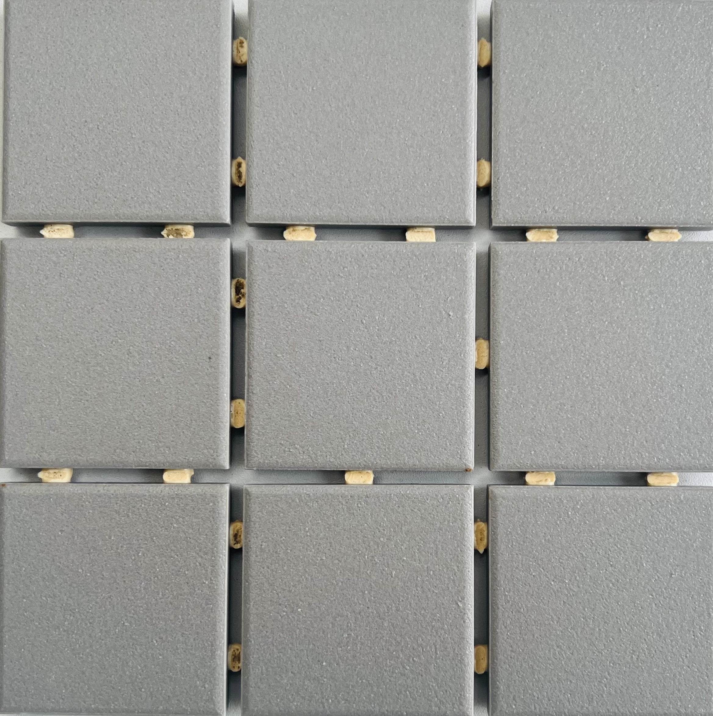 The Suki range of full body porcelain tiles. is frost proof, suitable for floor and wall, ok for swimming pools. Antislip finish. Each tile is 4.8×4.8cm mounted on 30.6×30.6cm sheet. The dot mounted mosaics are particularly suitable for swimming pools because they allow full adhesion of the adhesive to the back of the tile. Perfect for showers and wet areas.