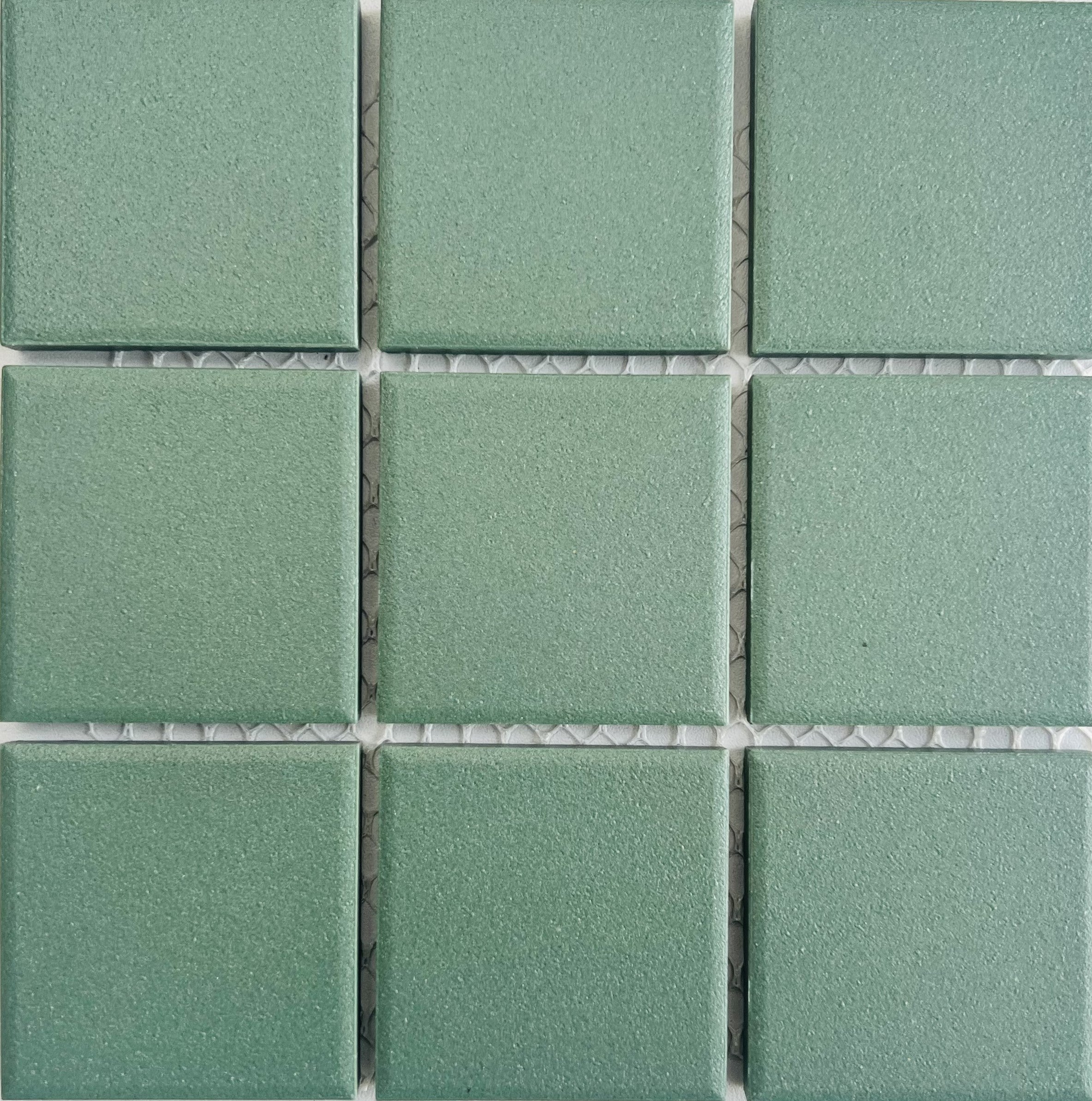 48x48mm square tiles mounted onto 306x306mm mosaic sheets. Full body porcelain. FROST PROOF, can be used on Floor and Wall, perfect for pools. 30.6×30.6 mosaic sheet. R11 antislip finish.