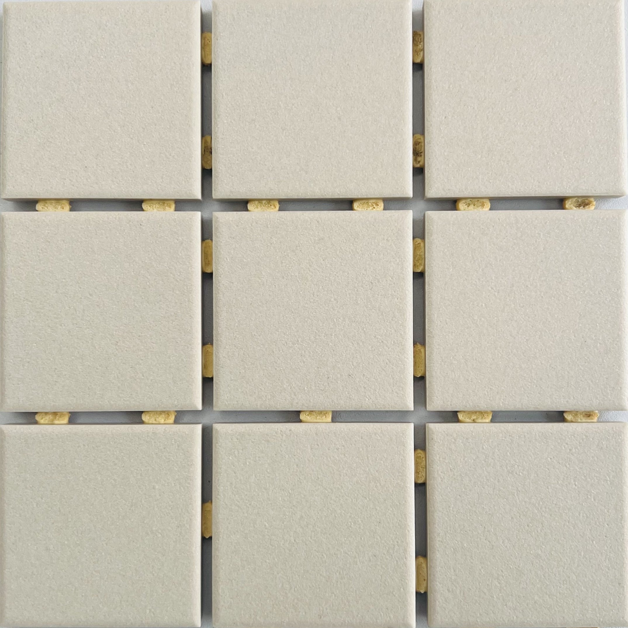 The Suki range of full body porcelain tiles. is frost proof, suitable for floor and wall, ok for swimming pools. Antislip finish. Each tile is 4.8×4.8cm mounted on 30.6×30.6cm sheet. The dot mounted mosaics are particularly suitable for swimming pools because they allow full adhesion of the adhesive to the back of the tile. Perfect for showers and wet areas.