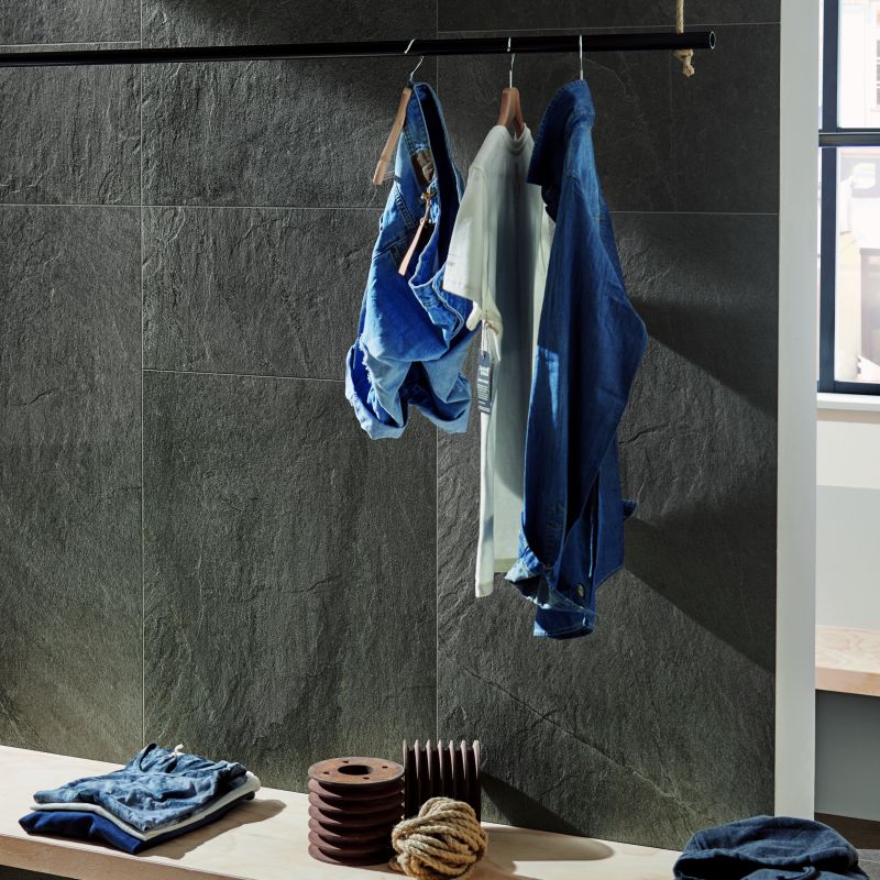 Inspired by luxurious quartz stone popular in Italy, in a modern black tone. The subtle surface highlights of X-Rock Black create a sense of lived-in luxury.