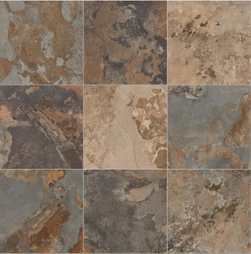 Available in stock in the 60×60 size. in two finishes natural, smooth to the touch with a slate-like surface and anti-slip, ideal for outdoors and high-traffic areas. Featuring 32 different tile faces for maximum variation.